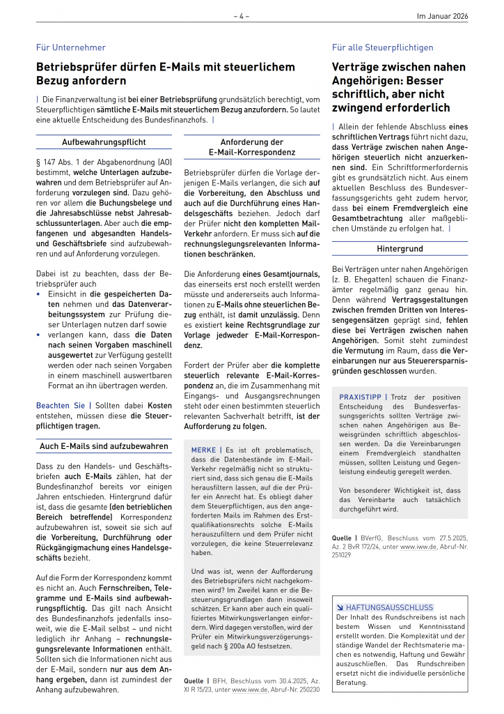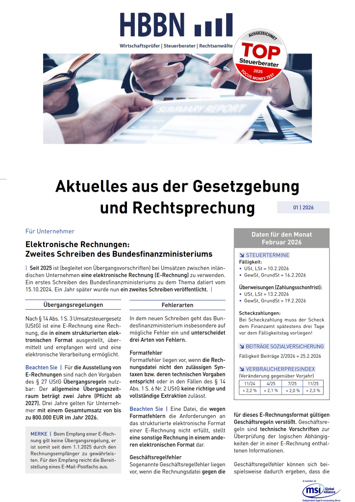 Die Mandantenrundschreiben aus den letzten Monaten finden Sie in unserem Archiv.